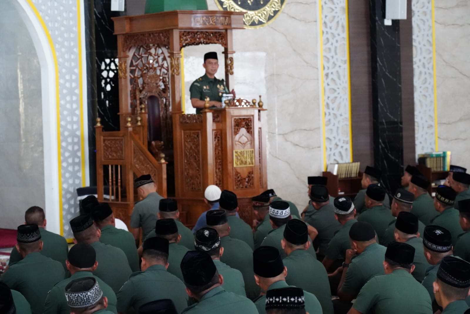 Banda Aceh – Keluarga Besar Kodam Iskandar Muda memperingati Tahun Baru Islam 1 Muharram 1446 Hijriah/2024 Masehi di Masjid Babul Mawaddah Makodam IM, Selasa (09/07/24) siang.