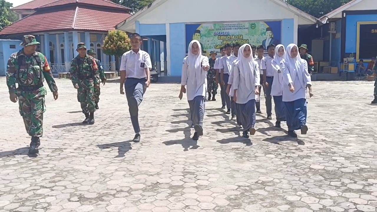 Kutacane – Para Babinsa Kodim 0108/Agara melaksanakan pelatihan PBB kepada siswa siswi SMAN 1 Kutacane di lapangan sekolah desa gumpang jaya kecamatan Babussalam Kabupaten Aceh tenggara, Rabu (10/07/24).