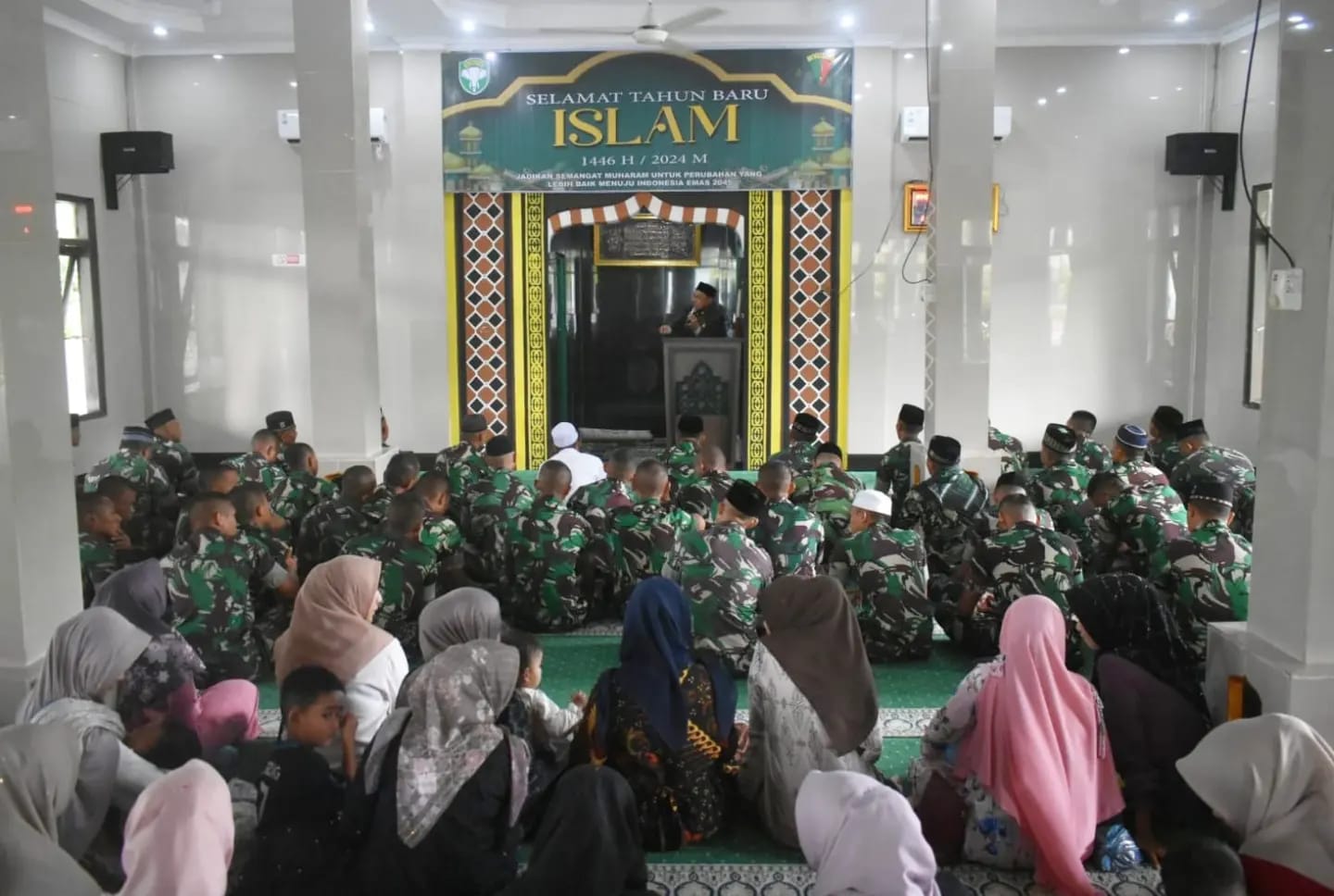 Peringatan tahun baru Islam 1446 Hijriyah turut dihadiri Wakil Ketua Persit KCK XIII Brigif 25/Siwah PD Iskandar Muda, para Kasi dan Perwira Brigif 25/Siwah serta seluruh prajurit dan Persit Brigif 25/Siwah.