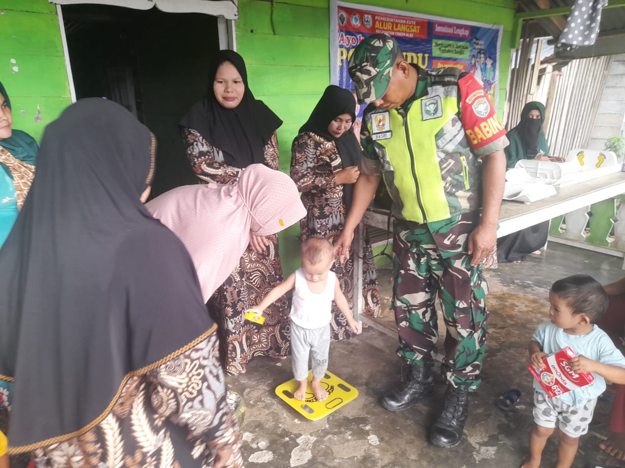 Kutacane –  Babinsa Posramil Tanoh Alas Serda Basri jajaran Kodim 0108/Agara melaksanakan Pendampingan kegiatan Posyandu Balita yang dilaksanakan di Desa Alur Langsat Kec, Tanoh Alas Kab, Aceh Tenggara, Kamis (11/07/24).