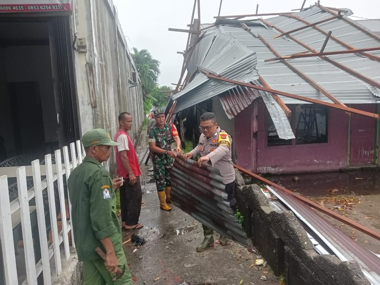 Pasca terjadinya hujan deras yang disertai angin kencang, para Babinsa jajaran Kodim 0105/Abar langsung turun ke wilayah guna melakukan monitoring dan menetralisir keadaan.