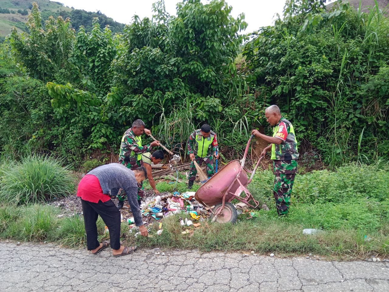 Serka Tawardi menyampaikan Ada berbagai cara yang dilakukan Babinsa agar desa yang menjadi binaannya terlihat bersih rapi dan indah, dia aktif membantu masyarakat melaksanakan kerja bakti pembersihan sampah yang berserakan di kiri kanan jalan,