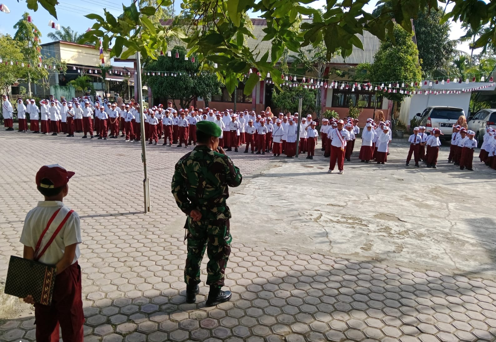 Rangkaian Upacara berjalan khidmat dan tertib ini tampak diikuti oleh Kepala Sekolah Hendri Saputra, S.Pd., para Dewan Guru serta Siswa/Siswi SD Negeri Tanjung Meulaboh.
