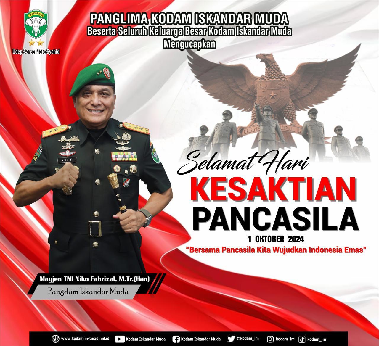 Panglima Kodam Iskandar Muda, Mayjen TNI Niko Fahrizal, M.Tr.(Han), beserta seluruh keluarga besar Kodam Iskandar Muda mengucapkan :