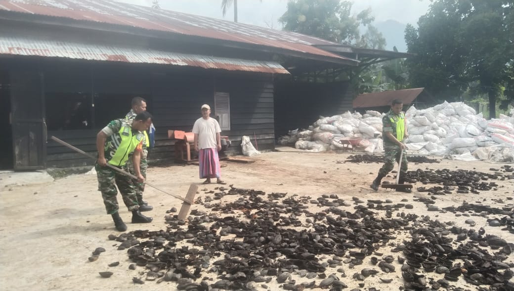 Babinsa Anjangsana Ke Desa Binaan Bantu Jemur Kulit Coklat/Cacao..