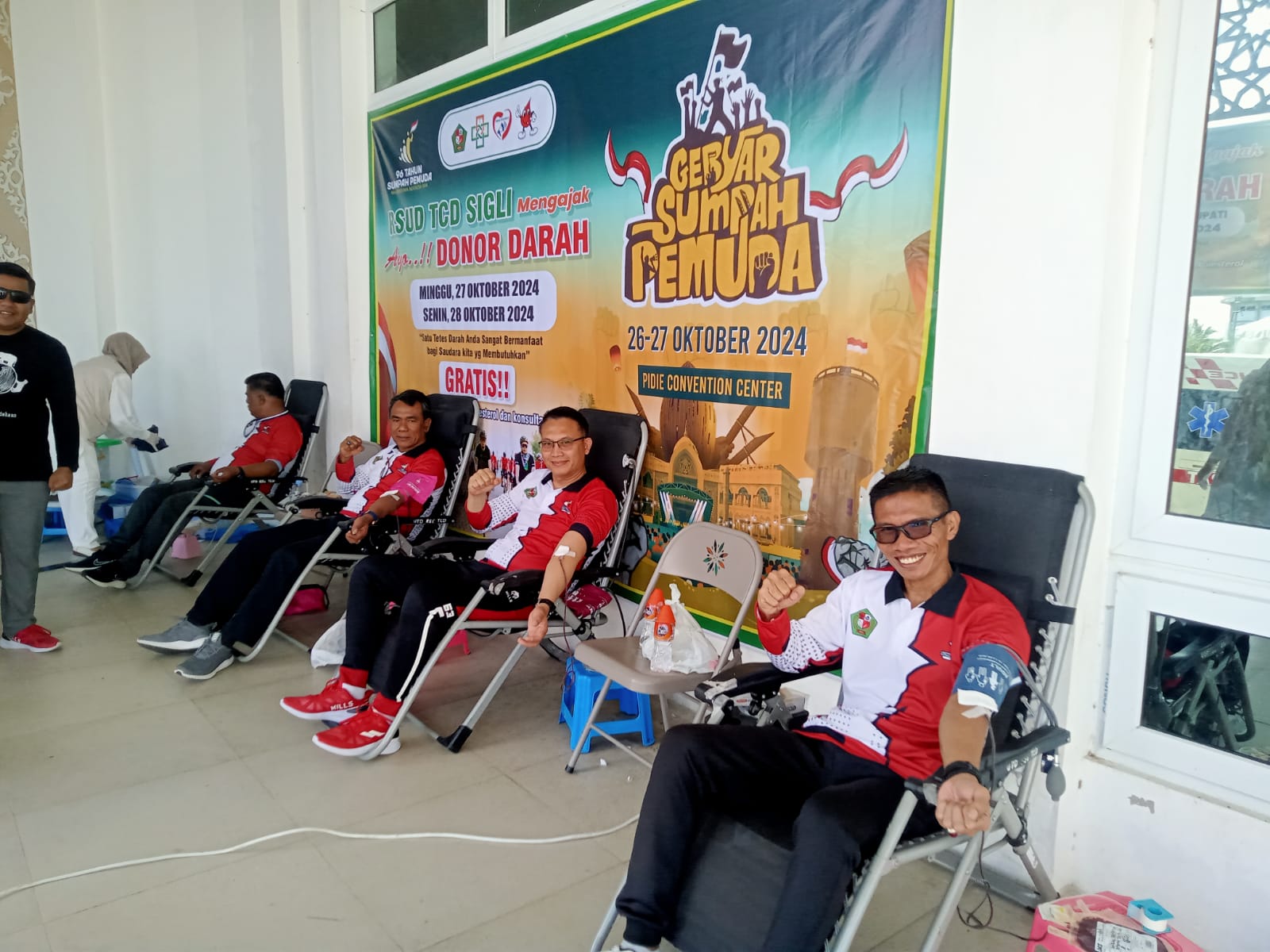 Pidie – Komandan Komado Distrik Militer (Dandim) 0102/Pidie, Letkol Inf Andi Irsan M. Han, bersama istri menghadiri acara sepeda santai, senam bersama, dan donordarah dalam rangka memperingati Hari Sumpah Pemuda ke-96 tahun 2024, yang digelar di halaman Gedung Pidie Convention Center (PCC), Kabupaten Pidie. Minggu (27/10/2024).