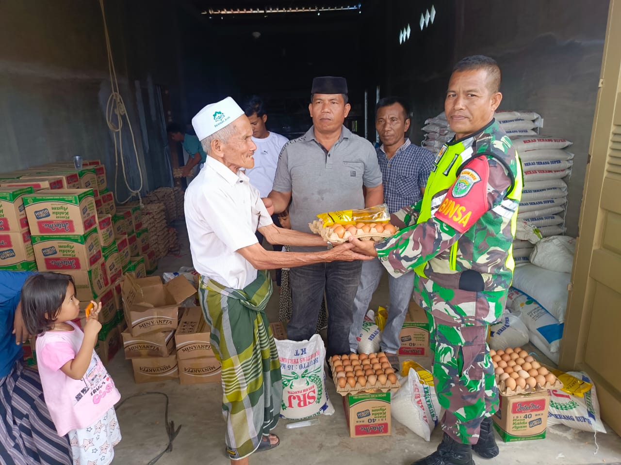 Babinsa Dampingi Penyaluran Bansos Kepada Warga Pasca Banjir Yang lalu.