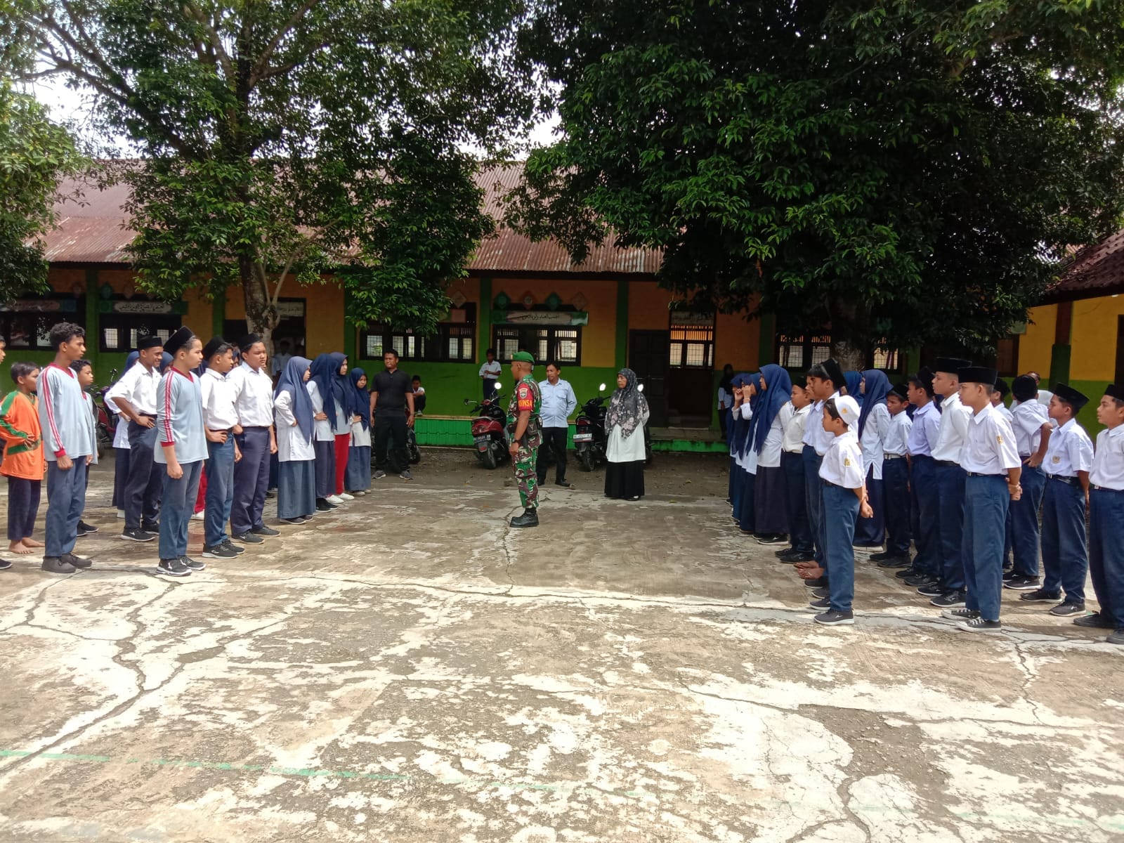 Koramil 18/Tripa tgl 04 November 2024, Anggota Koramil 18 /Tripa An. Serda Nazaruddin Melaksanakan kegiatan Sosialisasi tentang TNI dan pelatihan PBB kepada siswa-siswi MTSN 3 trienggadeng Kec. Trienggadeng Kab. Pidie Jaya.