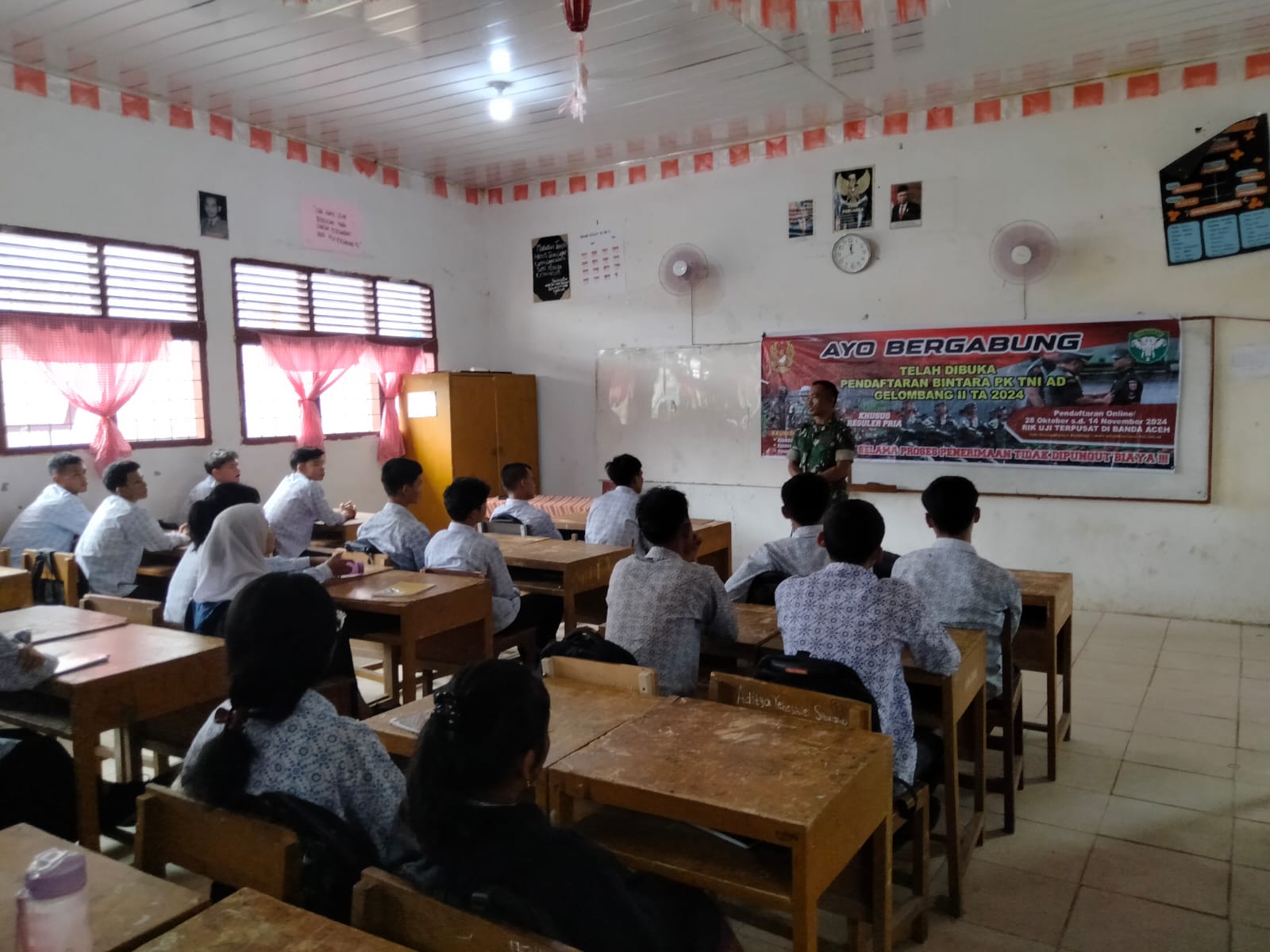 Kutacane – Koramil 0108-01/Lawe Sigala jajaran Kodim 0108/Agara melaksanakan Sosialisasi Penerimaan calon prajurit TNI di sekolah SMAN Lawe Sigala gala. Kecamatan Lawe sigala gala. Kab. Aceh Tenggara. Minggu (10/11/24).