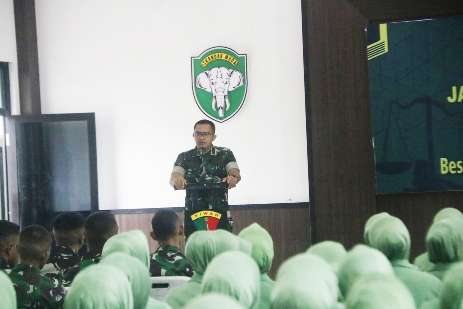 Lhoksukon – Satuan Brigade Infanteri 25/Siwah menggelar kegiatan penyuluhan hukum bagi Prajurit dan Persit Brigif 25/Siwah oleh tim Hukum Kodam Iskandar Muda di Aula Cut Nyak Meutia Mabrigif 25/Siwah, Blang Aman, Lhoksukon, Aceh Utara, Selasa (19/11/2024).