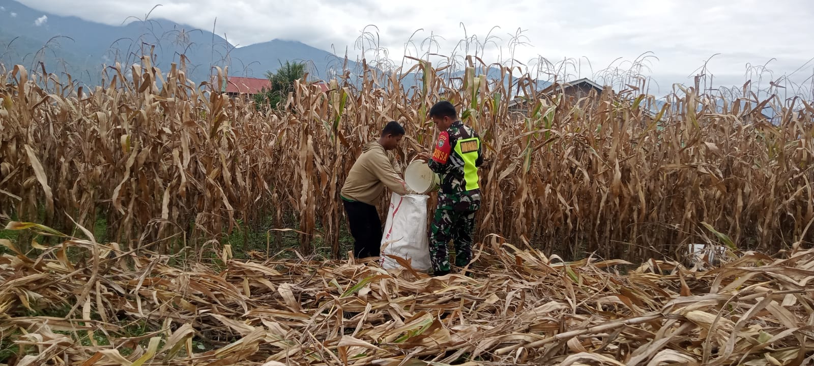 Kutacane – Babinsa Koramil 04/Babussalam Serda M Nasir jajaran Kodim 0108/Agara membantu petani panen jagung di desa Perapat sepakat, kecamatan Babussalam Kabupaten Aceh Tenggara ,Kamis (28/11/2024).