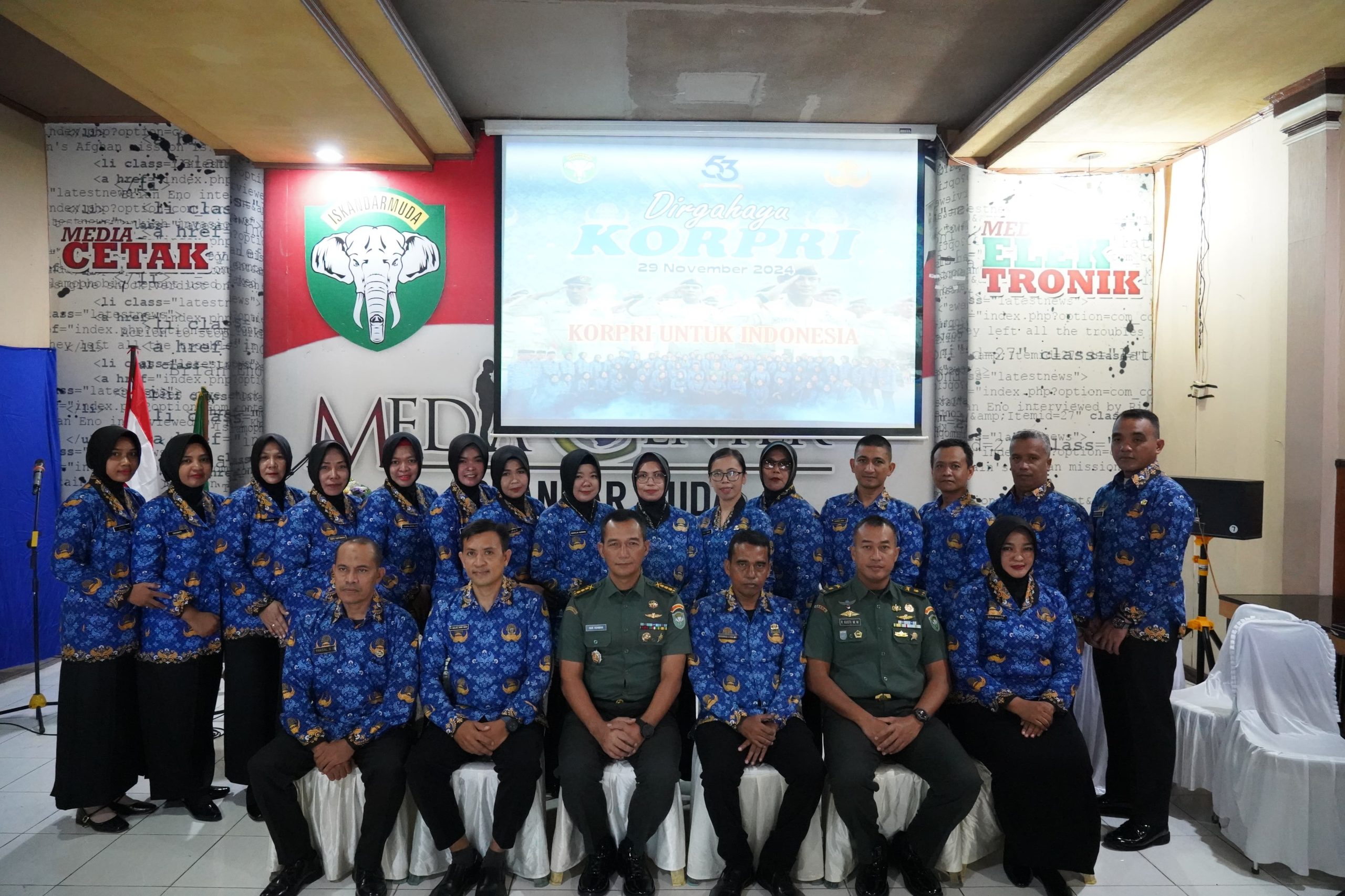 Banda Aceh – Dalam rangka memperingati Hari Ulang Tahun (HUT) ke-53 Korps Pegawai Republik Indonesia (KORPRI) yang jatuh pada hari ini, 29 November 2024, KORPRI Sub Unit Kodam Iskandar Muda (IM) menggelar acara syukuran di Media Center, Neusu, Aceh, pada Jumat (29/11/2024).