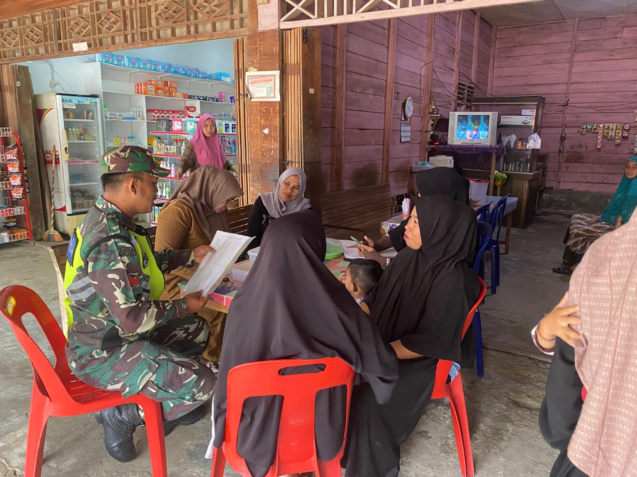 Aceh Timur – Koptu A.N. Rambe, anggota Babinsa Koramil 24/Dri, Kodim 0104/Atim, melaksanakan pendampingan kepada kader posyandu dalam rangka pendataan Program Keluarga Berencana (KB) Nasional di Desa Mending Ara, Kecamatan Darul Ihsan, Kabupaten Aceh Timur. Sabtu (30-11-2024)
