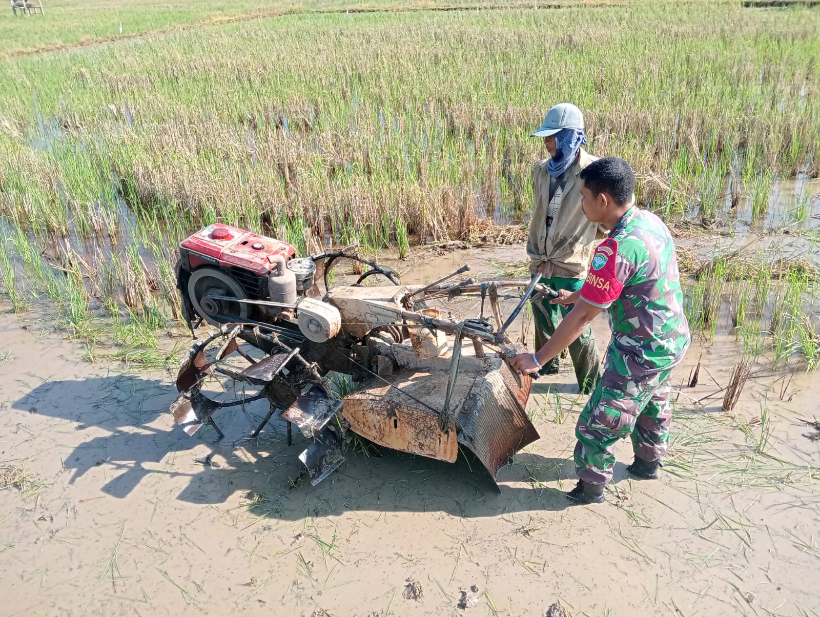 Sebagai bagian dari kegiatan pertahanan wilayah, Serda Pirdaus ikut serta dalam olah tanah sawah dengan menggunakan mesin bajak. Kegiatan ini bertujuan untuk mempermudah proses tanam padi yang akan dilakukan oleh petani di wilayah tersebut.