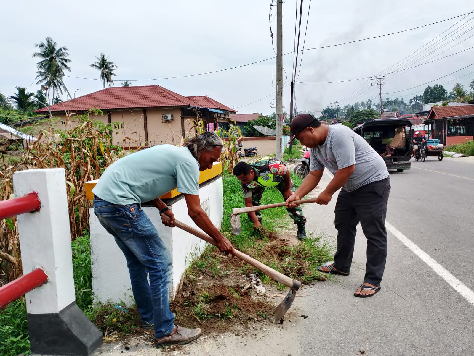 Sertu Julidin menyampaikan Kondisi ruas kanan -kiri jalan yang ditumbuhi dengan rumput liar dan banyaknya sampah membuat pemandangan sekitar jalan menjadi kelihatan kurang terpelihara kebersihannya.