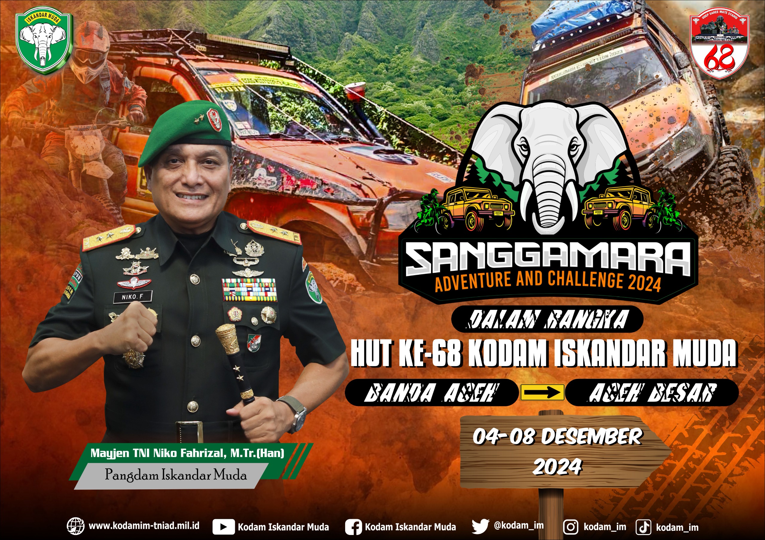 Kodam Iskandar Muda mengundang seluruh pecinta off-road di Aceh untuk turut serta dalam kegiatan ini. Mari bersama-sama merayakan semangat kebersamaan, solidaritas, dan dedikasi untuk kemanusiaan melalui “Sanggamara Adventure and Challenge 2024”.