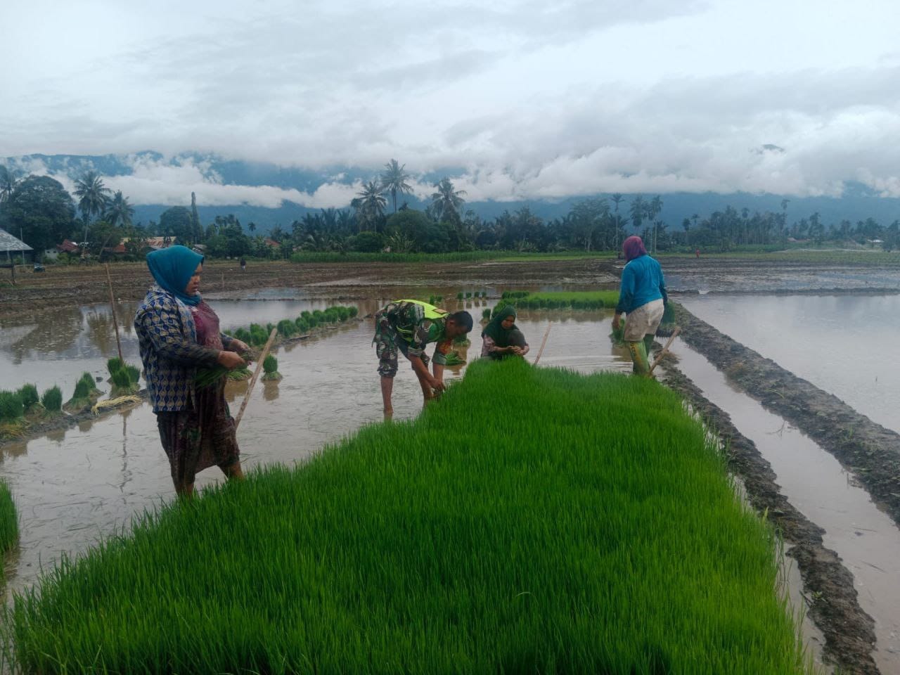 Seperti saat ini, kami turut serta terjun kesawah dalam membantu para petani untuk mengumpulkan bibit padi yang siap untuk ditanami,Ia menambahkan, untuk menambah produktivitas panen padi kali ini, pihaknya telah menghimbau kepada para petani agar mengupayakan percepatan masa persiapan tanam.