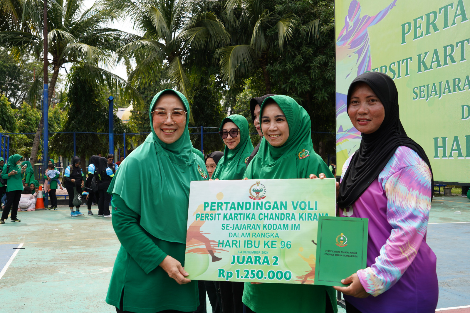 Banda Aceh – Ketua Persit Kartika Chandra Kirana (KCK) Daerah Iskandar Muda, Ny. Eva Niko Fahrizal, secara resmi membuka pertandingan voli dalam rangka memperingati Hari Ibu ke-96 di lapangan voli Pomdam IM, Rabu (4/12/2024).