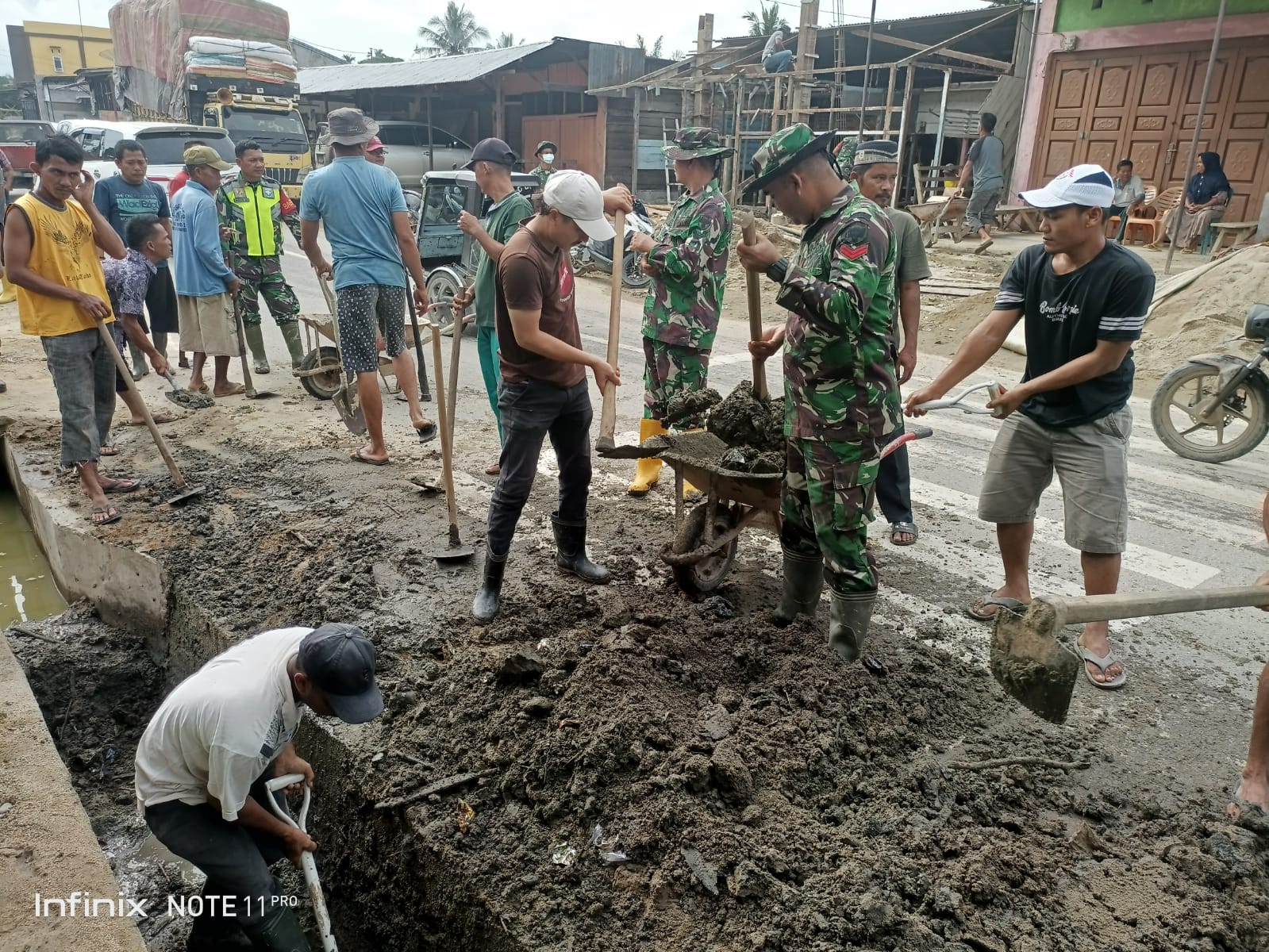 Kutacane – Babinsa Posramil Lawe Sumur jajaran kodim 0108/Agara bersama warga bergotong royong membersihkan parit, bertempat di setia Baru Kec ,Lawe Sumur Kab, Aceh Tenggara, senin (09/12/24).