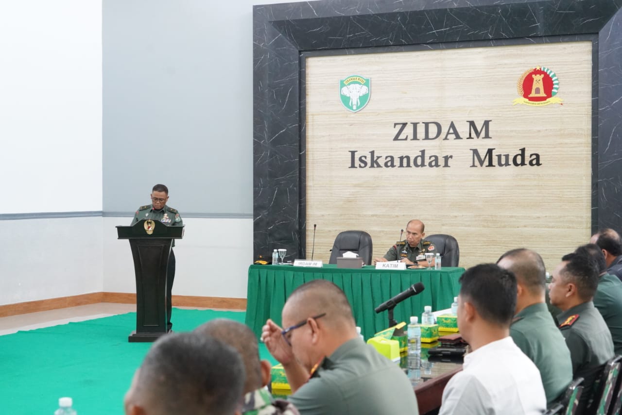 Banda Aceh – Inspektur Kodam Iskandar Muda (Irdam IM) Brigjen TNI Yudi Yulistyanto, M.A., secara resmi membuka Bimbingan Teknis (Bimtek) Penataan Produk Administrasi dan Pertanggungjawaban Keuangan Optimasi Lahan (Oplah) Tahun Anggaran 2024 yang diselenggarakan oleh Tim Bimtek Markas Besar Angkatan Darat (Mabesad). Kegiatan ini berlangsung di Aula Mako Zidam IM, Geuceu Meunara, Kecamatan Jaya Baru, Kota Banda Aceh, pada Rabu (11/12/2024), dan diikuti oleh Komandan Satuan Komando Kewilayahan (Dansatkowil) dari jajaran Korem 011/Lilawangsa dan Korem 012/Teuku Umar Kodam IM.