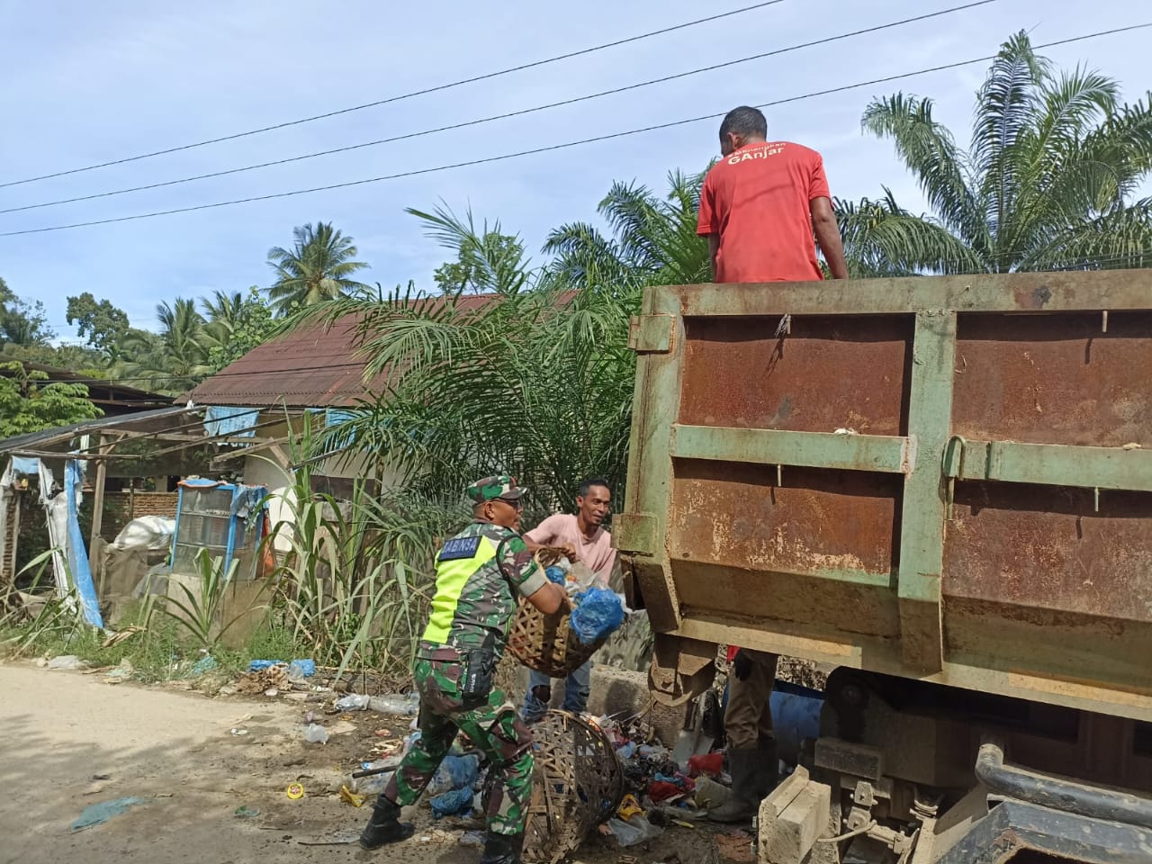Aceh Timur – 12 Desember 2024 Dalam upaya menjaga kebersihan lingkungan dan mendukung program pemerintah daerah, Koptu Togar Hutasoit, Babinsa Koramil 18/Bda Kodim 0104/Aceh Timur, turut serta membantu petugas Dinas Kebersihan mengumpulkan dan mengangkat sampah ke atas kendaraan dinas kebersihan untuk dibawa ke tempat pembuangan sementara (TPS). Kegiatan ini berlangsung di Desa Rayeuk M, Kecamatan Banda Alam, Kabupaten Aceh Timur.