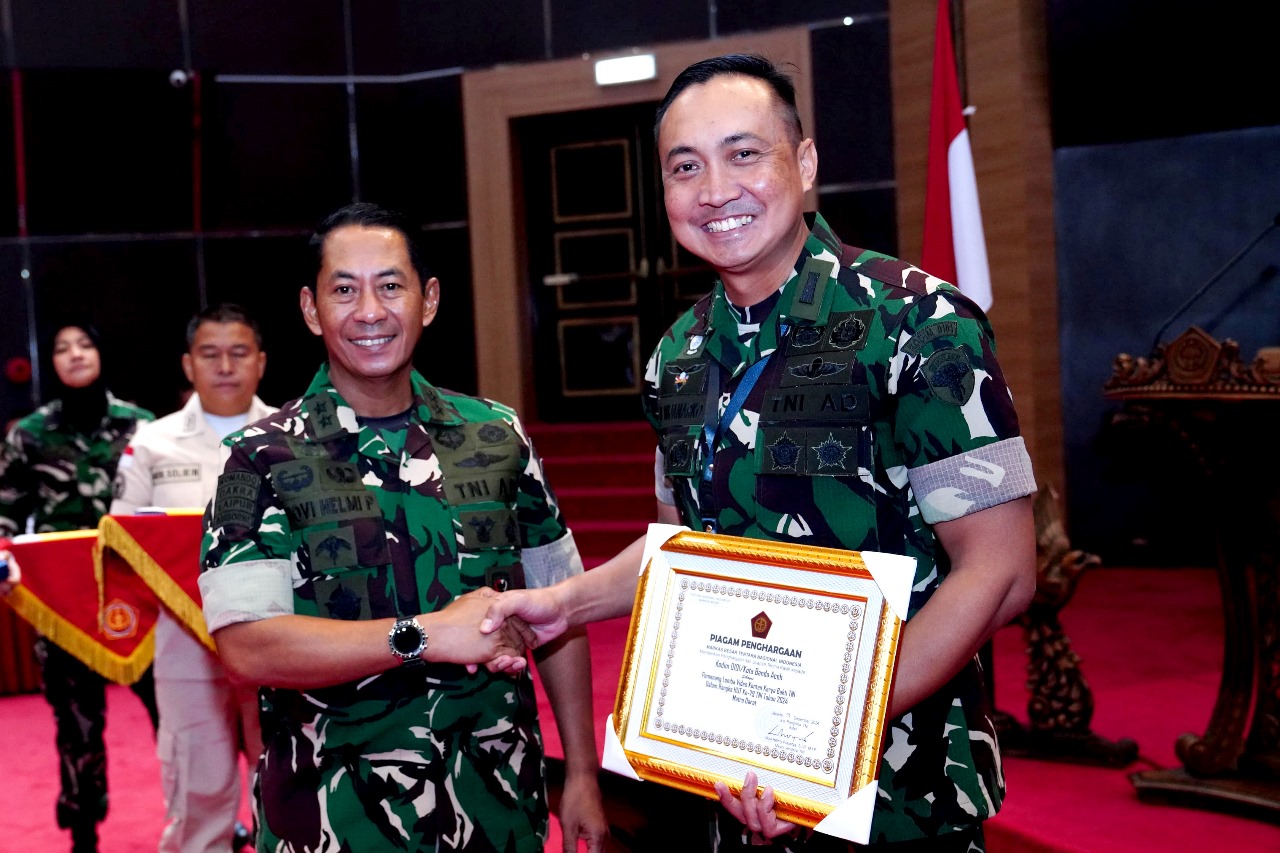 Penghargaan tersebut diserahkan langsung oleh Asisten Teritorial (Aster) Panglima TNI, Mayjen TNI Novi Helmy Prasetya, S.I.P., M.I.P., dalam acara Rapat Evaluasi Program Kerja dan Anggaran (Progjagar) Bidang Teritorial TNI Tahun Anggaran 2024, bertempat di Aula Gatot Subroto, Markas Besar TNI, Cilangkap, Jakarta Timur, pada Jumat (13/12/2024).