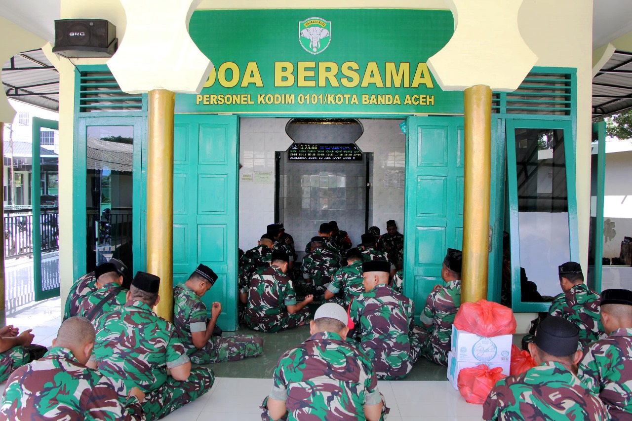 Banda Aceh – Suasana khidmat menyelimuti Mushollah Al-Fattah di Makodim 0101/Kota Banda Aceh, Jalan S.T.A Mahmudsyah Nomor 32, Gampong Baro, Kecamatan Baiturrahman. Puluhan prajurit Kodim 0101/Kota Banda Aceh berkumpul dengan penuh kekhusyukan untuk melaksanakan doa bersama dalam rangka menyambut Hari Juang TNI Angkatan Darat (AD) Tahun 2024, Jum’at (13/12/2024).