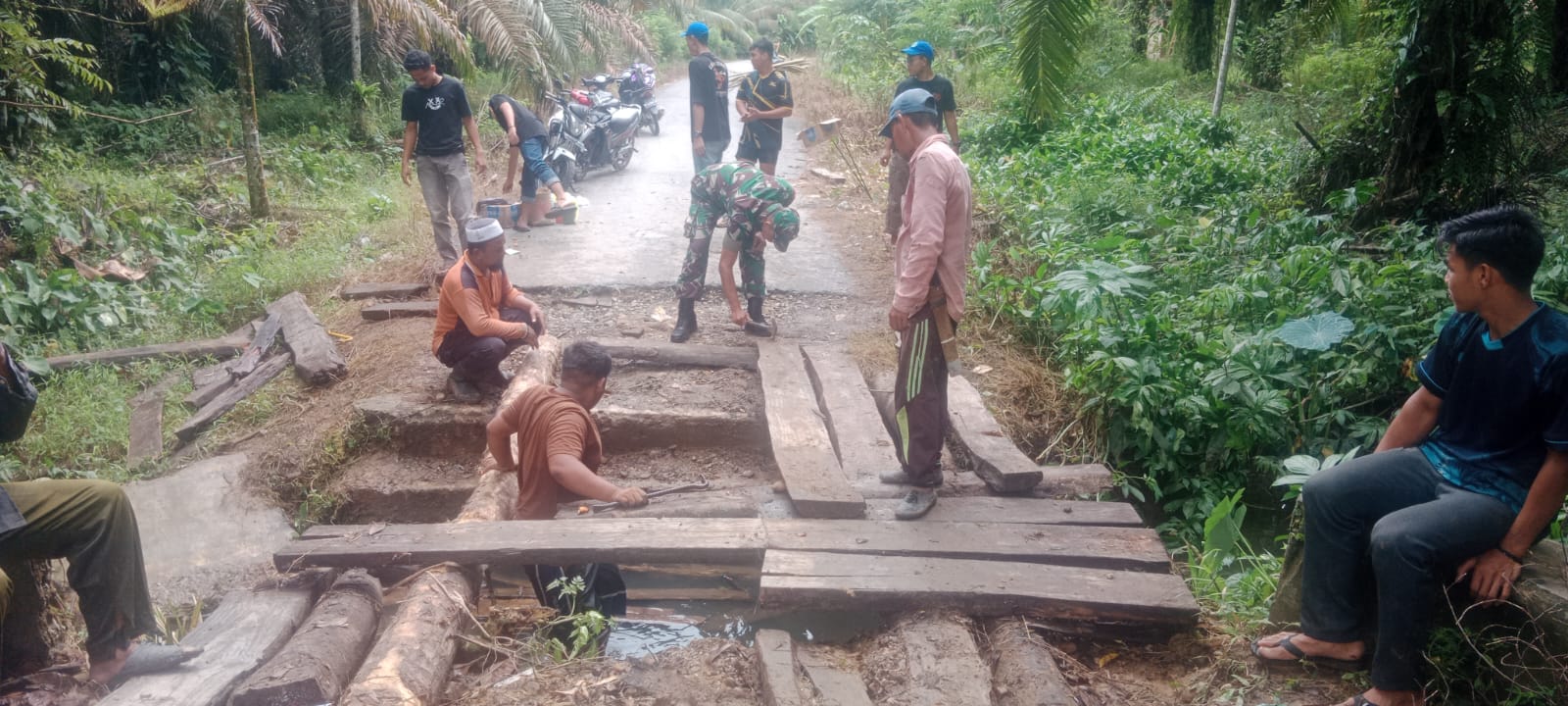 “Sebagai Babinsa, saya berkomitmen untuk selalu mendukung setiap kegiatan yang dapat meningkatkan kesejahteraan dan keamanan masyarakat. Seperti pepatah ‘berat sama dipikul, ringan sama dijinjing’, kami semua bahu-membahu mengganti lantai jembatan ini demi kenyamanan bersama,” ujar Serda Supriadi.