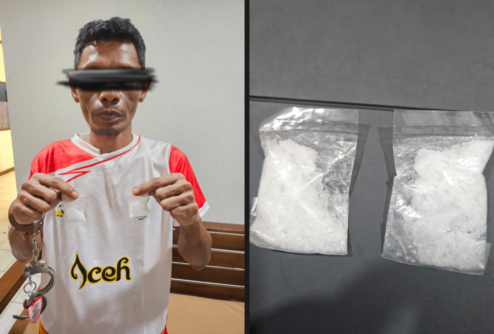 Sekitar pukul 20.30 WIB, anggota Intel Kodam IM tiba di lokasi dan mulai melakukan pemantauan. Tidak lama kemudian, terlihat dua pria datang menggunakan sepeda motor. Salah satu di antaranya turun, sementara rekannya langsung meninggalkan tempat kejadian. Melihat gerak-gerik mencurigakan, anggota Intel Kodam segera mengamankan dan memeriksa pria yang dicurigai tersebut. Dalam pemeriksaan, ditemukan dua bungkus plastik berisi kristal putih yang diduga kuat merupakan sabu-sabu di dalam saku celananya.