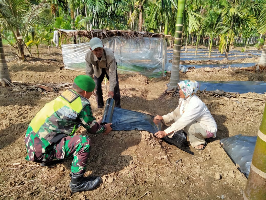 Babinsa Posramil ketambe Dampingi Petani Pemasangan Plastik Mulsa Untuk Tanaman Cabe Merah Di Desa Binaan