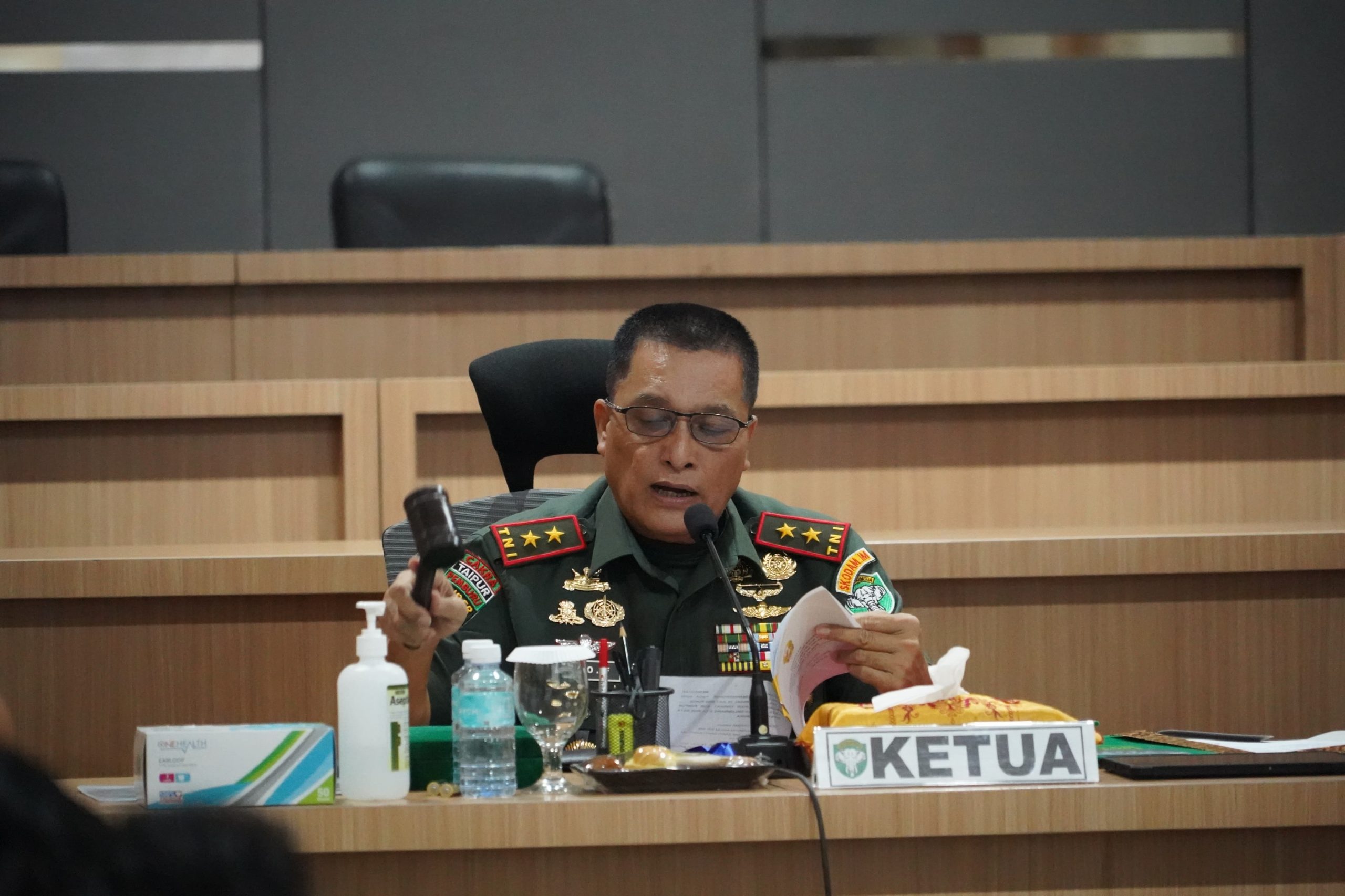 Banda Aceh – Panglima Komando Daerah Militer Iskandar Muda (Pangdam IM), Mayor Jenderal TNI Niko Fahrizal, M.Tr.(Han)., memimpin Sidang Pantukhir dalam rangka Pemilihan Calon Tamtama Prajurit Karier (Tamtama PK) Tentara Nasional Indonesia Angkatan Darat (TNI AD) Gelombang II Tahun Anggaran 2025. Sidang yang merupakan tahapan akhir dalam seleksi penerimaan ini berlangsung di Gedung Malahayati Lt. 2, Makodam IM, pada Selasa (15/07/25).