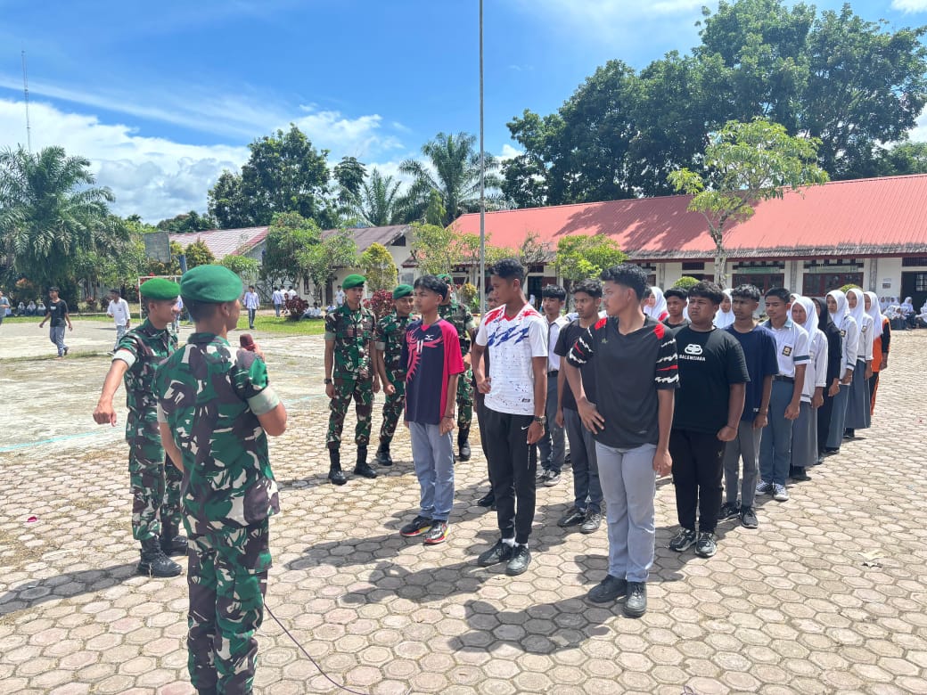 Geumpang, Pidie – Kegiatan Pembentukan Karakter Kedisiplinan dan Peraturan Baris Berbaris (PBB) pada hari Rabu tanggal 23 Juli 2025. Kegiatan ini ditujukan kepada Siswa/i SMA Negeri 1 Geumpang yang berjumlah 20 orng bertempat di SMA Negeri 1 Geumpang, Kec. Geumpang, Kab. Pidie oleh Satuan Yonif TP-857/GG dipimpin Letda Inf Redho Nur Cahyo, S.Pd., beserta 10 orang Personel TNI AD dalam rangka pembentukan karakter kedisiplinan dan pengetahuan tentang Peraturan Baris Berbaris (PBB).