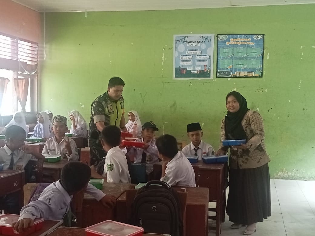 Kutacane – Babinsa Koramil 0108-04/Babussalam Serda Damanhuri jajaran Kodim 0108/Agara Rutin mendampingi pelaksanaan MBG di sekolah MIS Bambel kecamatan Babussalam Kabupaten Aceh Tenggara, Kamis (07/08/2025).