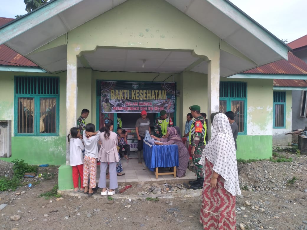 Kutacane – Dalam rangka memeriahkan HUT ke 80 TNI Posramil Darul Hasanah mengelar kegiatan Bakti Kesehatan