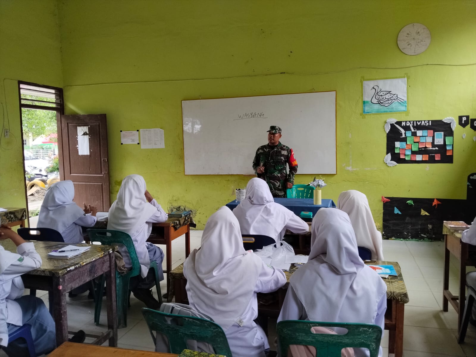ACEH TAMIANG,MEDIA CENTER DIM 0117/ATAM- Membentuk generasi penerus Bangsa, anggota Koramil 04/Bendahara Sertu Endri.S melaksanakan kegiatan pembinaan wawasan kebangsaan kepada siswa siswi Madrasah Aliyah Swasta Sungai Iyu, Kecamatan Bendahara, Kabupaten Aceh Tamiang. Selasa (16/09/2025)