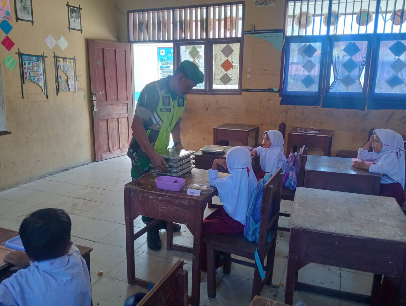 Kutacane – Babinsa Posramil Lawe Sumur dampingi pendistribusian makan bergizi gratis (MBG) kepada siswa siswi di wilayah binaan di kecamatan lawe sumur kabupaten Aceh Tenggara, Rabu (17/09/2025)