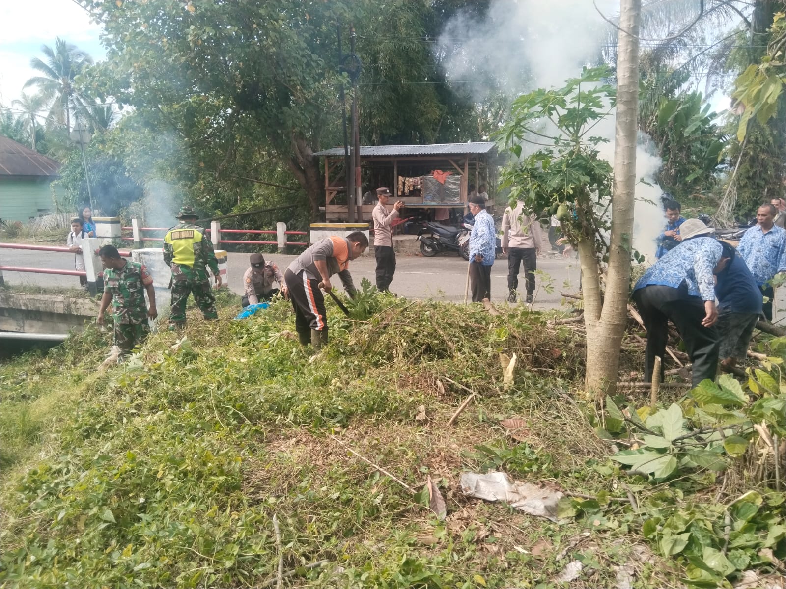 Kegiatan karya bakti yang dilaksanakan pada hari ini melibatkan puluhan warga petani, perangkat desa, serta anggota TNI dari Koramil setempat,polsek ,mereka bahu-membahu membersihkan sampah, lumpur, dan tanaman liar yang menyumbat saluran irigasi.