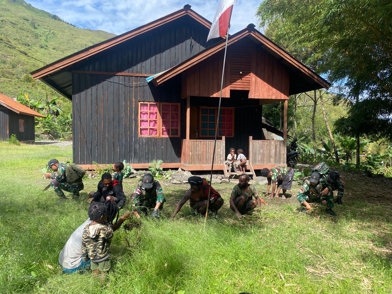 Sejak pagi, matahari menyinari kampung dengan lembut. Di halaman rumah, di jalan setapak, hingga fasilitas umum, prajurit TNI bersama warga bahu-membahu membersihkan lingkungan serta melaksanakan pengecekan Kesehatan Masyarakat, suara canda tawa, obrolan akrab, dan nyanyian sederhana terdengar memecah keheningan khas pegunungan Papua.