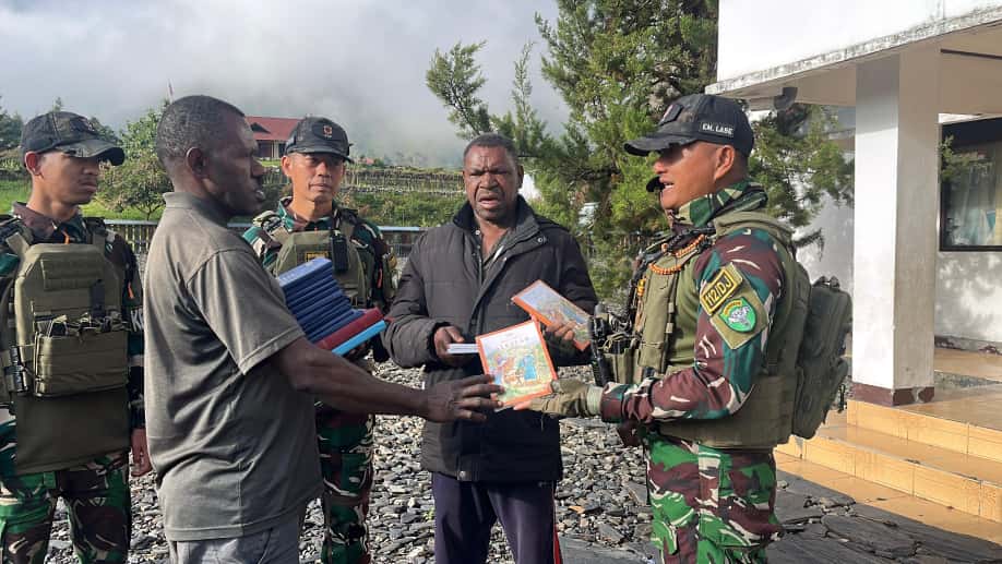 Papua Tengah — Dalam rangka mempererat hubungan dengan masyarakat dan wujud kepedulian terhadap rumah ibadah, Pos KP 55 Satgas Yonif 112/DJ melaksanakan kegiatan pembersihan lingkungan Gereja serta membagikan Alkitab di Gereja GIDI Jemaat Jerusalem Mulia, Kampung Timboban, Distrik Pagaleme, Kabupaten Puncak Jaya, Provinsi Papua Tengah, Minggu (12/10/2025).