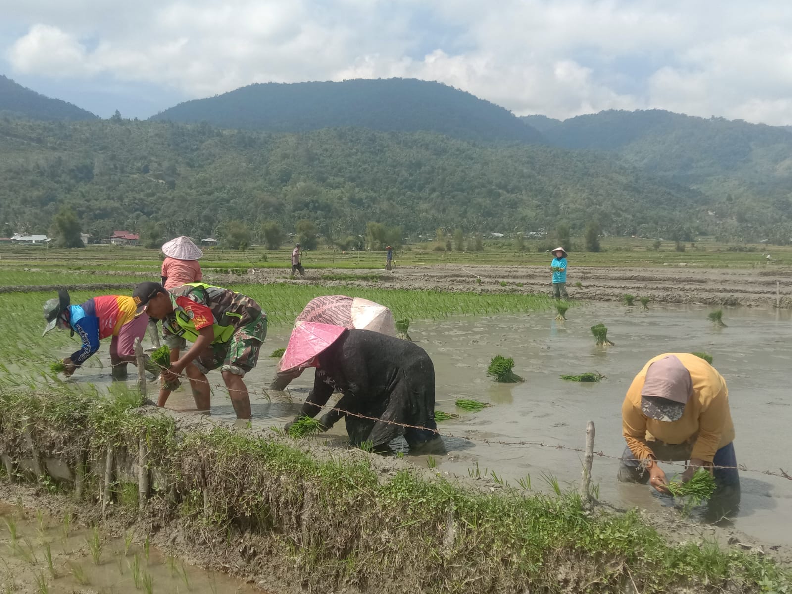 Dukung Ketahanan Pangan,Babinsa Koramil 16/Tangse Turun ke Sawah Bantu Petani Tanam Padi