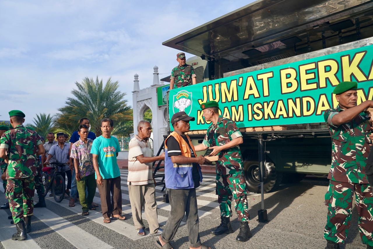 “Kegiatan Jumat Berkah merupakan bagian dari bentuk nyata pengabdian TNI kepada rakyat. Melalui kegiatan ini, kami ingin berbagi kebahagiaan dan menanamkan nilai kepedulian di tengah masyarakat, sekaligus memperkuat kemanunggalan TNI dengan rakyat,” ujar Pangdam IM.