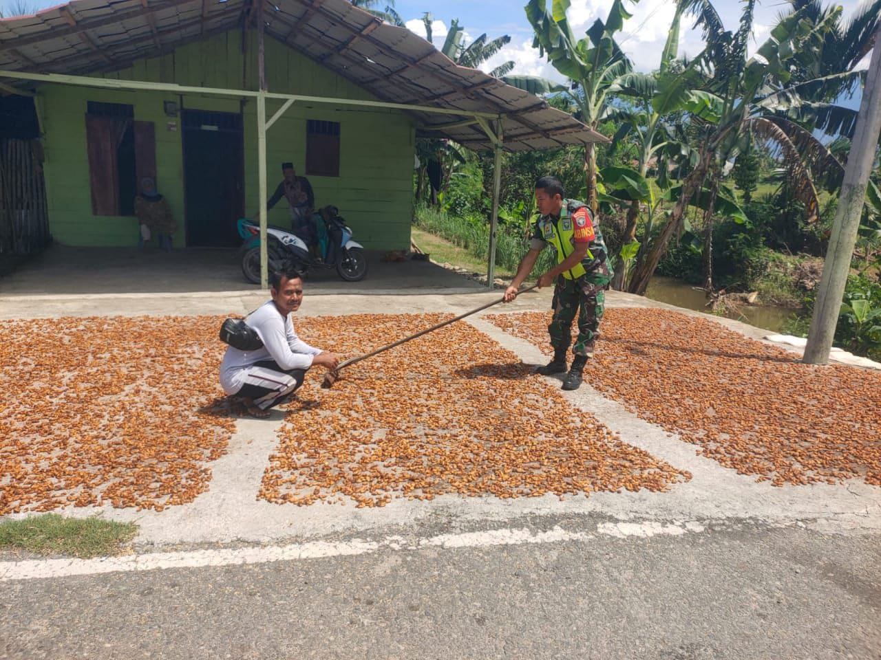 Peduli Dan Jalin Kebersamaan Dengan Masyarakat Babinsa Bantu Jemur Hasil Coklat