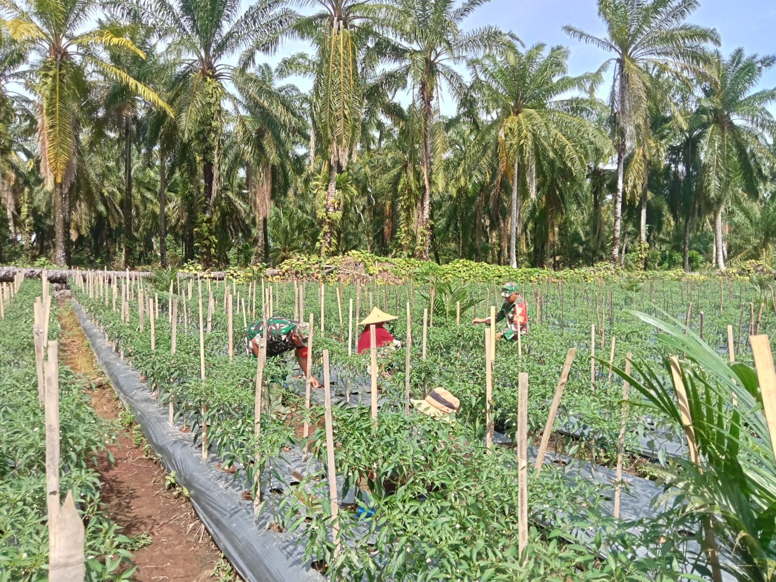 Babinsa tersebut terjun langsung ke lahan pertanian milik Bapak Alwi, seorang petani setempat yang tengah mengembangkan budidaya tanaman cabe. Dalam kegiatan itu, Babinsa membantu dalam proses perawatan tanaman, seperti membersihkan gulma, memeriksa kondisi tanaman, dan memberikan masukan tentang cara pemupukan yang tepat.