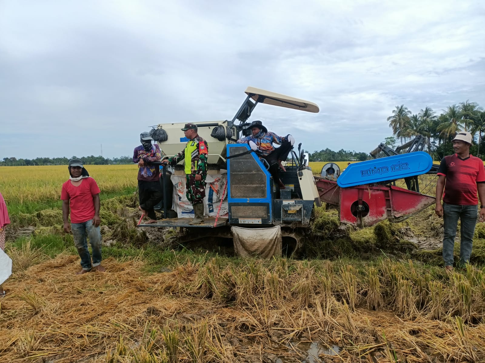 Pidie Jaya – Dalam upaya mendukung program ketahanan pangan nasional, Babinsa Koramil 27/Jangka Buya Kodim 0102/Pidie, Serka Hismullah, turun langsung ke sawah membantu para petani melaksanakan panen padi di Desa Muko Jurong, Kecamatan Jangka Buya, Kabupaten Pidie Jaya, Rabu (29/10/2025).