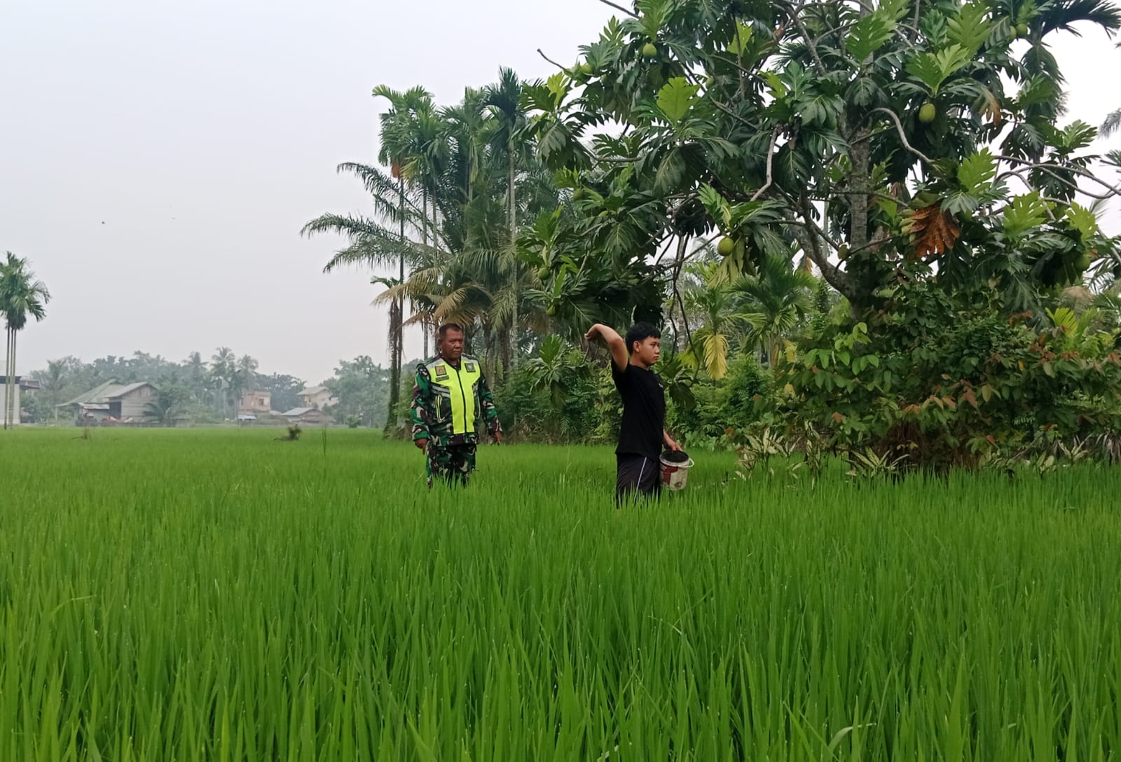 ACEH TAMIANG,MEDIA CENTER DIM 0117/ATAM- Babinsa Koramil 06/Manyak Payed Pelda Natra Wiriawan bersama Poktan Lestari melaksanakan kegiatan pendampingan memantau perkembangan tanaman padi, yang bertempat di Desa Bukit Paya, Kecamatan Manyak payed, Kabupaten Aceh Tamiang. Senin (03/11/2025)