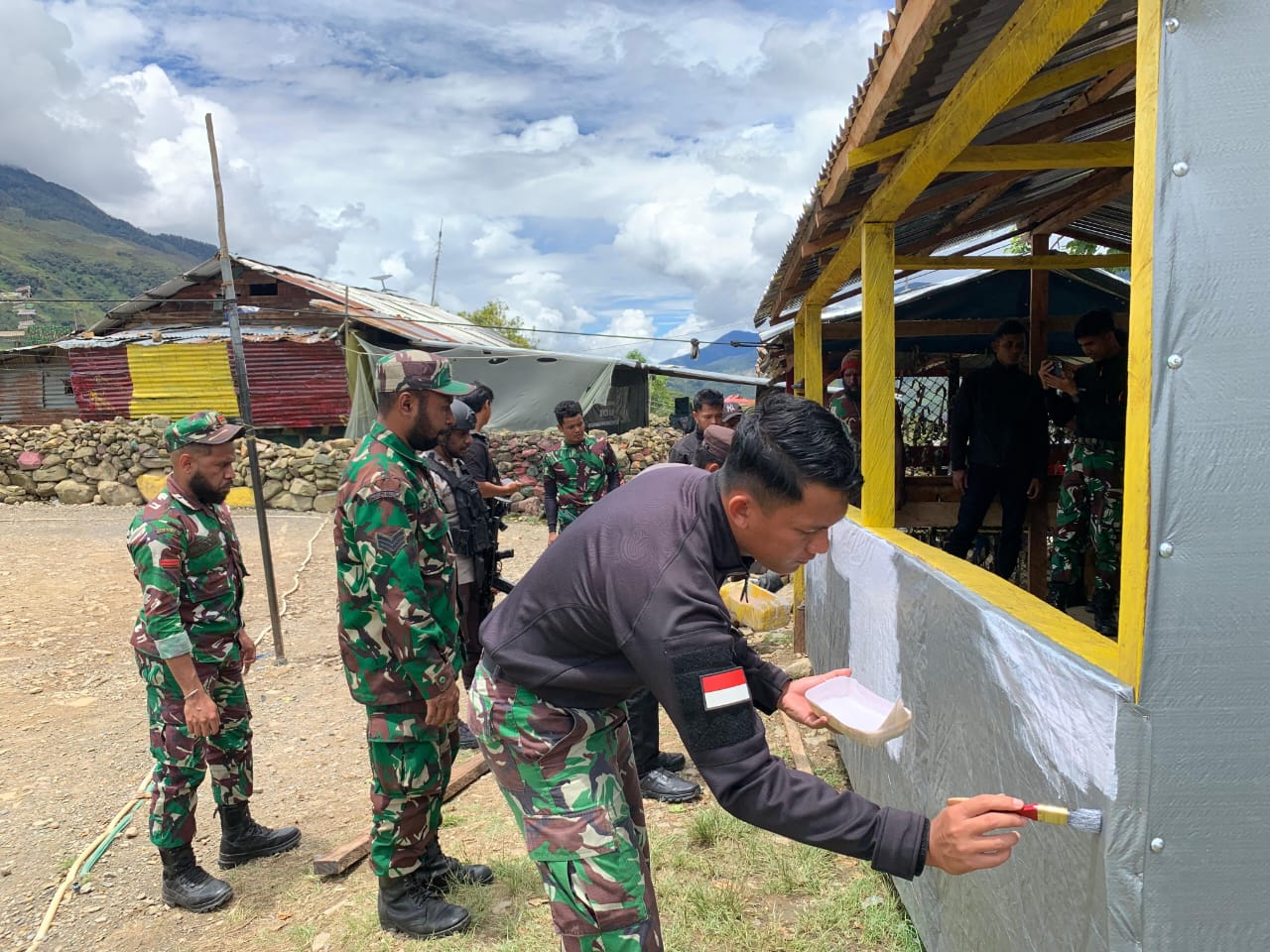 Puncak Jaya – Satgas Yonif 112/DJ Pos Ilu, Aparat TNI – Polri beserta Masyarakat Distrik Ilu melaksanakan Pembangunan Rumah Baca yang ada di Kampung Dolinggame Distrik Ilu Kabupaten Puncak Jaya Provinsi Papua Tengah, Selasa (11/11/2025).