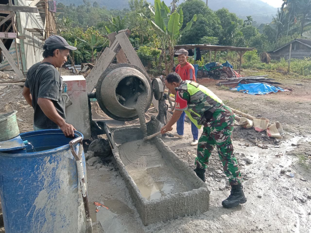Bapak Julis Pemilik rumah, menyampaikan terima kasih kepada Babinsa yang telah peduli dalam membantu proses pembangunan rumahnya. Semoga keakraban dan kekompakan seperti sekarang ini dapat terus di terapkan kepada penerus generasi muda kita di desa ini.