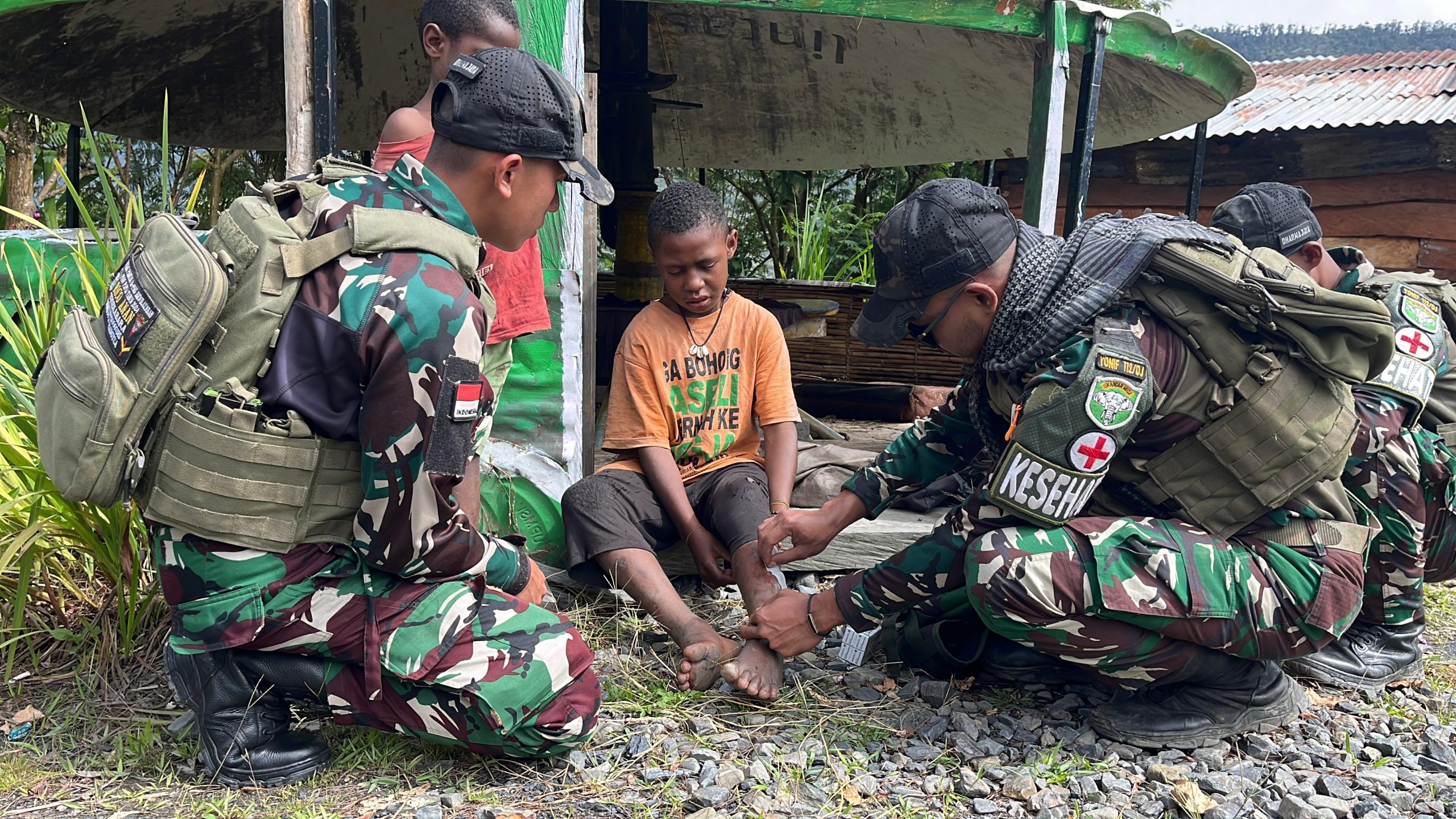 Satgas Yonif 112/DJ Layani Kesehatan Gratis Bagikan Makanan Dan Pakaian Layak Pakai Di Papua