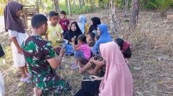 Setelah menerima penyambutan Menhan RI melanjutkan perjalanan menuju lokasi peninjauan menggunakan helly di satuan Yonif TP 857/Gana Gajahsora.