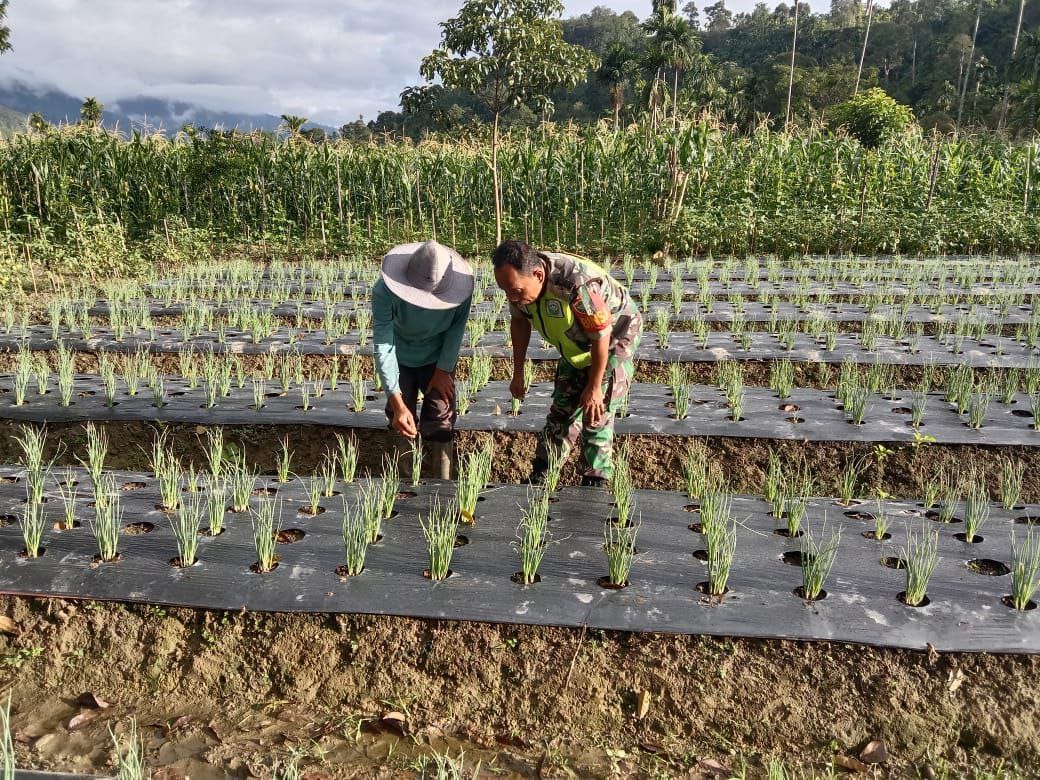 Kutacane – Babinsa posramil leuser koptu Samsuri Gajah jajaran Kodim 0108/Agara Membantu warga mengecek hama bawang merah milik ibu Masrina di desa bintang Alga Musara Kecamatan.leuser kabupaten.Aceh Tenggara.Senin (17/11/2025).
